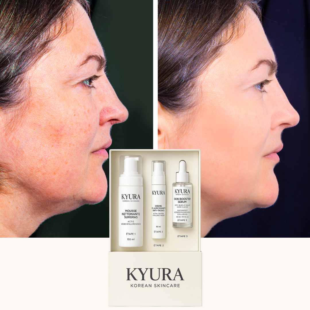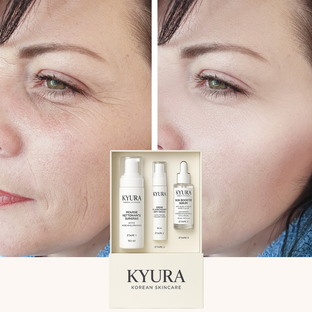 J’avais essayé plusieurs crèmes sans résultat… KYURA est la seule routine qui a vraiment unifié mon teint. Je recommande à 100 %